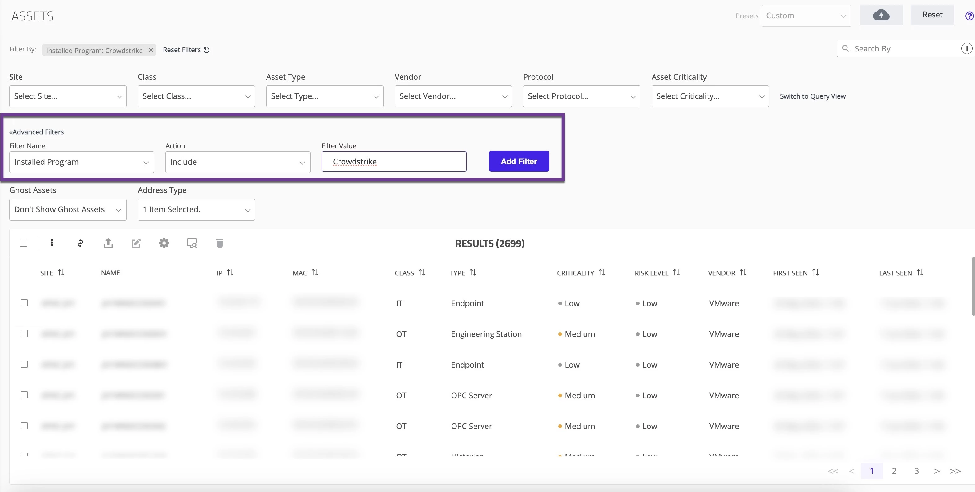 For "Filter Name" select "Installed Program". For "Action" select "Include". For "Filter Value" input "Crowdstrike"
