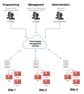 When referring to cloud-managed OT networks, these concepts remain the same. Using the management platform, operators and administrators can deploy settings changes, edit configurations, and manage the plant’s technology network across the Extended Internet of Things (XIoT). These site leaders can also manage the logic that needs to be executed by the PLCs to control Level 0 devices (sensors, actuators, etc.), and configure which data will be collected and sent to the management platform.