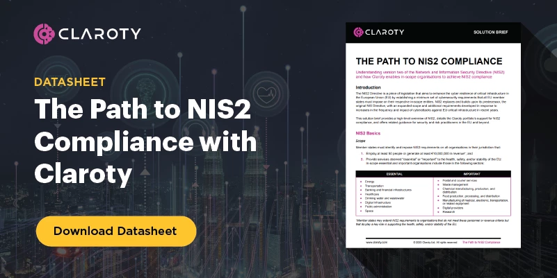 As an often-overlooked risk blind spot for critical infrastructure entities and other industrial, healthcare, commercial, and public sector organizations, CPS are imperative to secure not only because doing so is required by NIS2 and other regulations — but also because the health, safety, and stability of our society rely on CPS. With the help of a trusted advisor, like Claroty, organizations can ensure they are securing the OT assets, IoT and IIoT devices, building management systems (BMS), and internet of medical things (IoMT) devices that underpin their critical environments, as well as ensure compliance with the NIS2 Directive. As we now understand, compliance with NIS2 can be complex and difficult to make sense of with such a short window for compliance, that's why it is essential to work with a trusted partner to minimize regulatory risk while driving resilience across critical operations and infrastructure.