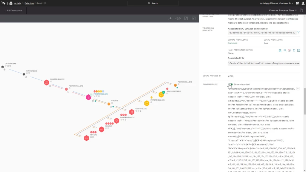 Image 2: A view within the CrowdStrike Falcon platform of an interactive process tree with full context of the events that occurred.
