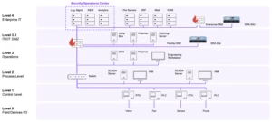 Diagram of the Purdue model for industrial control systems, which Claroty xDome Secure Access helps support by isolating network assets from direct access.