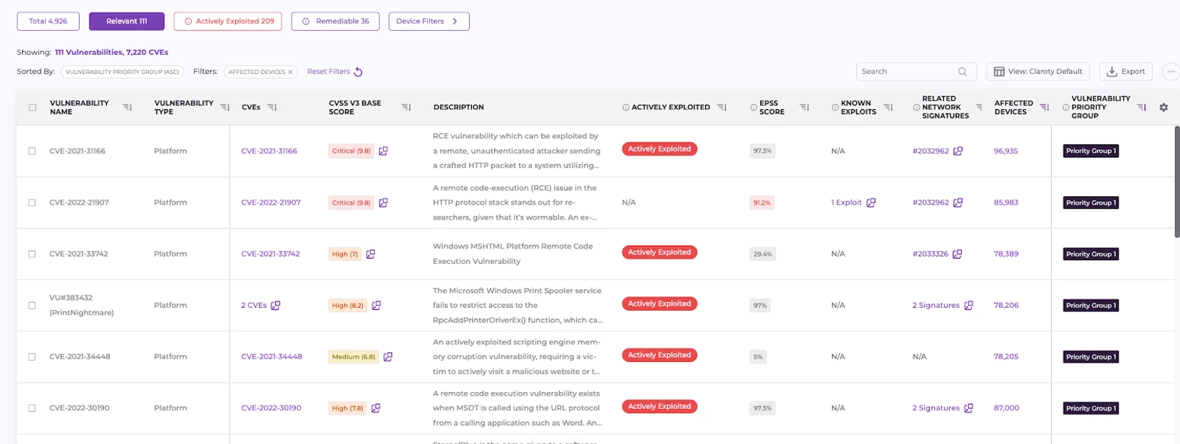 Claroty’s newly enhanced VRM solution further empowers CISOs and their teams to effectively and efficiently prioritize vulnerabilities affecting their CPS environments by: