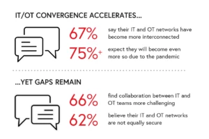 The onset of the COVID-19 pandemic forced most enterprises to fast-track their digital transformation projects in an unprecedented way. The survey results substantiate this observation—more than two-thirds of respondents said their IT and OT networks have become more interconnected since the COVID-19 pandemic began.