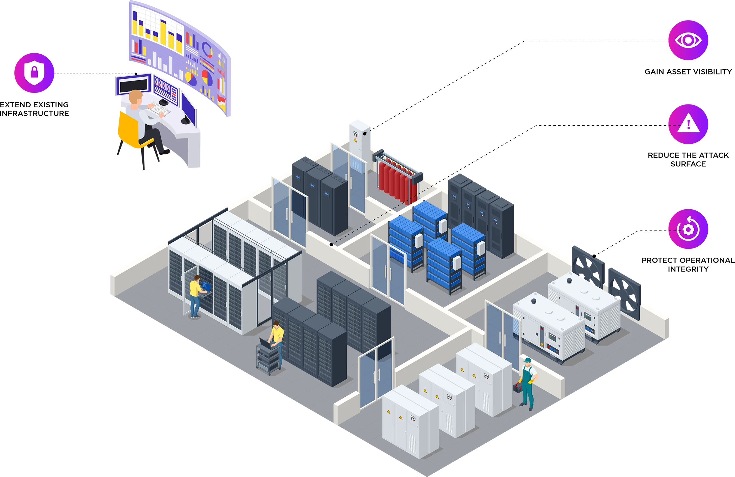 Discover the industry's leading CPS cybersecurity platform, designed to help data centers secure their IoT, OT, and BAS assets, minimize their attack surface, and drive digital transformation.
