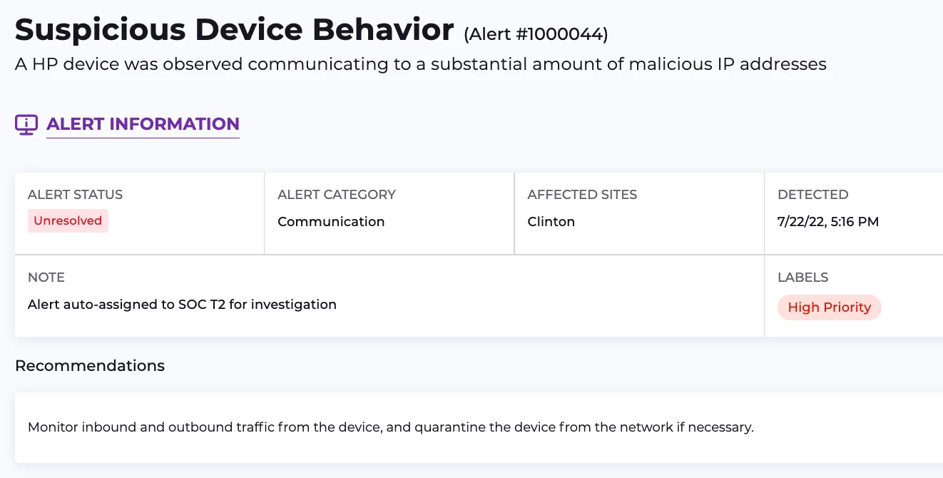 The inherent complexity and diversity of assets, systems, and processes in commercial environments makes threat monitoring uniquely prone to false positives. Claroty automatically weeds out these false positives and consolidates all interrelated events into a single alert. Not only does this approach help optimize your prioritization and response, but it also reduces alert fatigue and gives you more time to focus on the threats that matter most.
