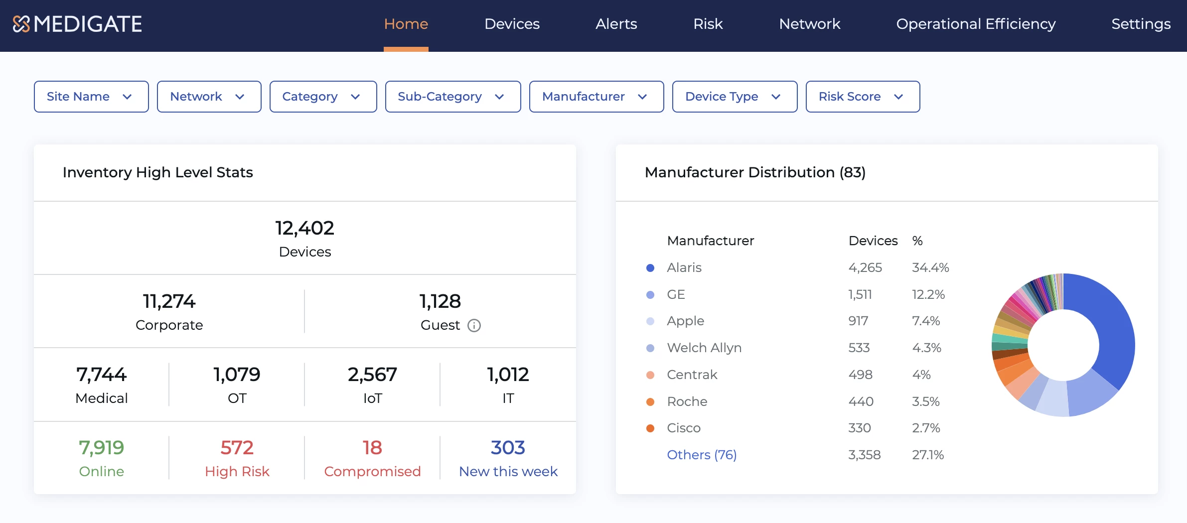 Medical devices are increasingly expensive to purchase, use, and maintain. Claroty reduces these costs by granting insight into where and how efficiently existing devices are used, their current lifespan, and how to safely extend that lifespan. These insights enable our NHS customers to better allocate hospital resources, defer or avoid replacement purchases, and even negotiate lower maintenance fees.
