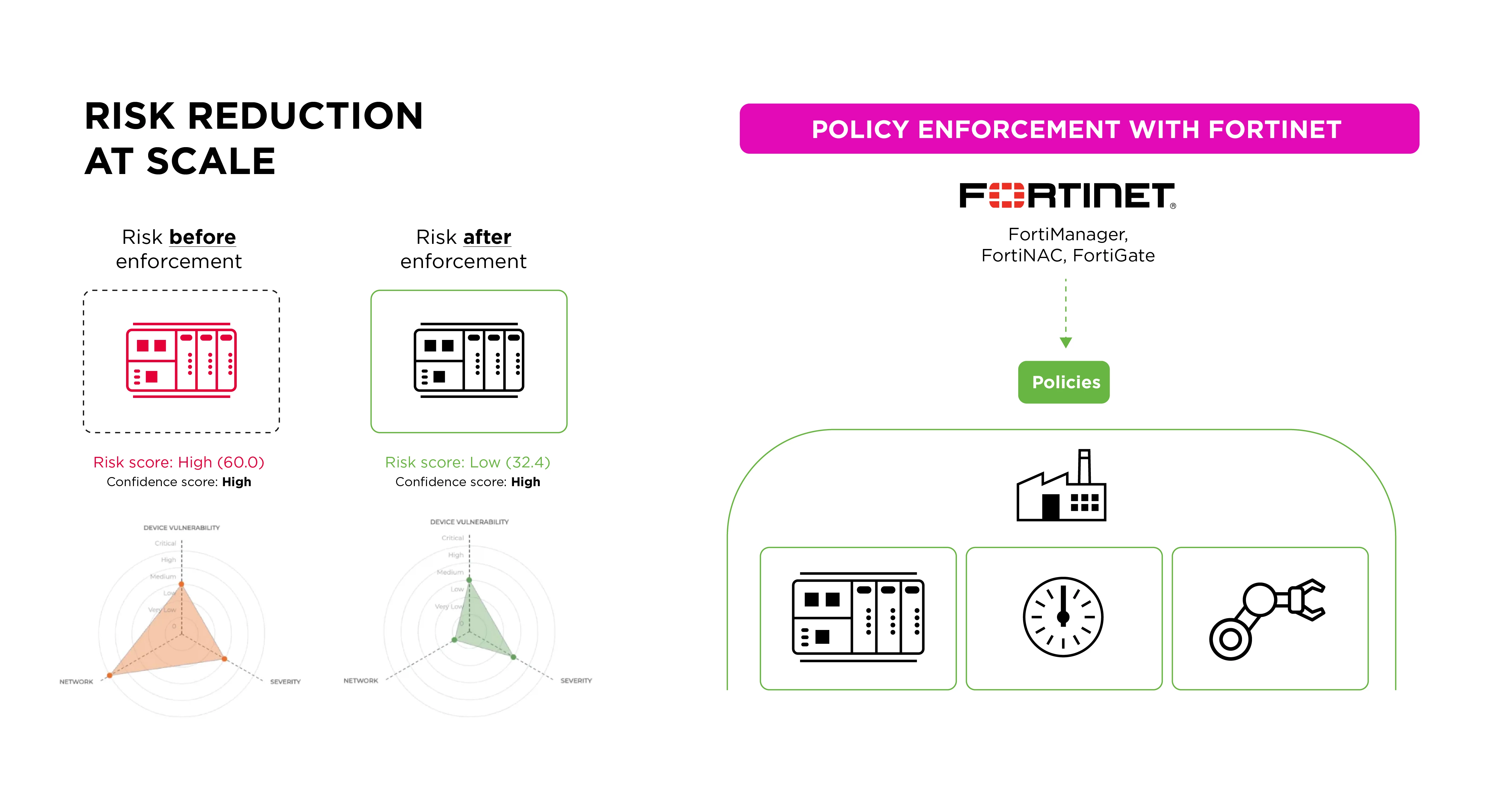 The Claroty and Fortinet partnership offers integrated solutions to help address challenges security administrators face today in protecting their enterprise from risks and threats inherent to networked cyber-physical devices. Together we deliver integrated solutions and workflows that benefit security administrators in the discovery and visualization of XIoT risks and the ability to protect and respond to risks and threats with segmentation, and device-level network policy enforcement.