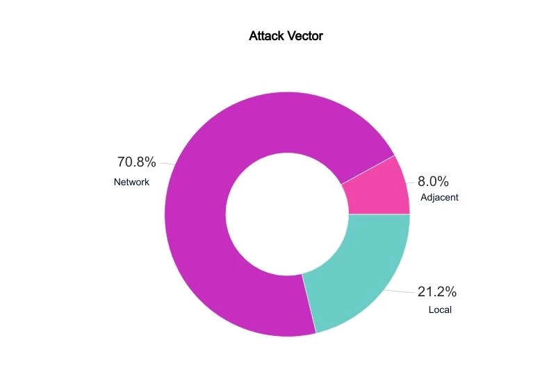 Of those 250, close to 71% have a network attack vector, indicating they can be attacked remotely.