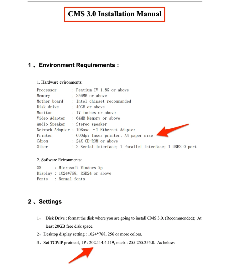 In addition, in the CMS server manual we also see that the vendor is asking the users to set up the Windows machine with this static IP address 202.114.4.119.