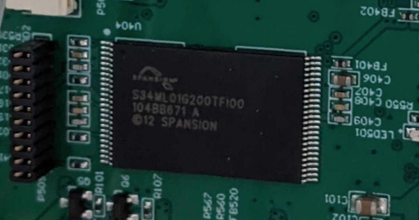 Flash chip which turned out to be S34ML01G200TFI000 NAND Flash SLC,1Gb,3x,3V,x8,4bit,TS48 by SkyHigh Memory.