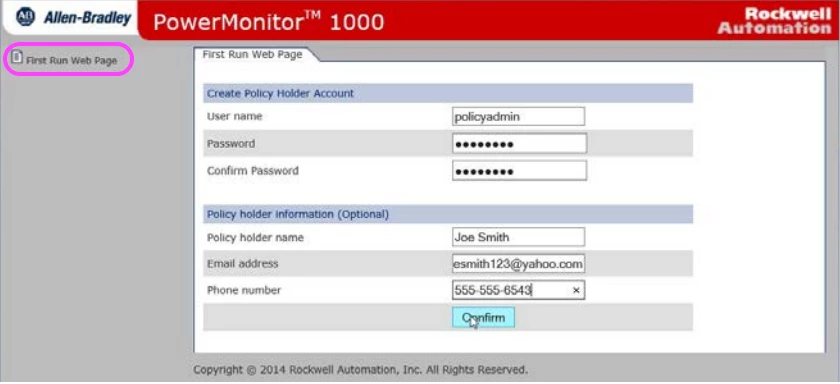 If the requested URL is /firstrun/cgi-bin/security then a Policy Holder user will be created.
