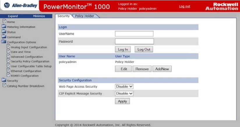 As mentioned before PowerMonitor 1000 has four user types: PolicyHolder, Admin, User and Application