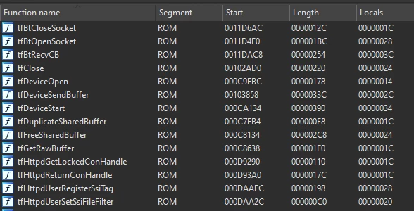 These debug logs are like candy for the researchers. With just a simple Python script, we were able to extract function names for almost all the functions within Treck’s code: