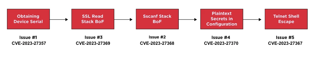 Team82 developed an exploit chain using all five vulnerabilities to exploit affected versions of the NETGEAR router while bypassing binary protection mechanisms like stack canaries.