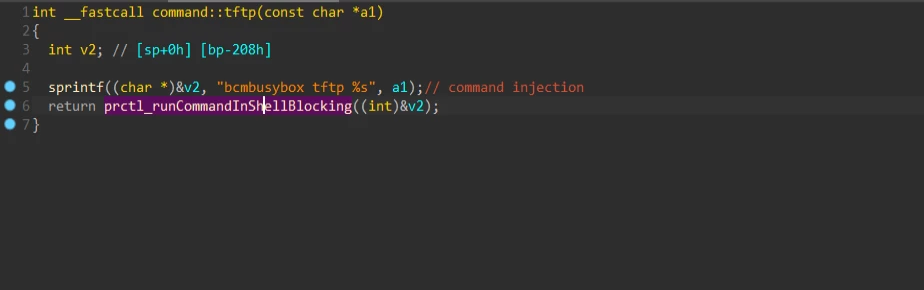 So, we had to look for another vulnerability, a command injection. We discovered that the TFTP command is not filtered before it is executed (CVE-2023-27370), which means that we can run any command using that interface.