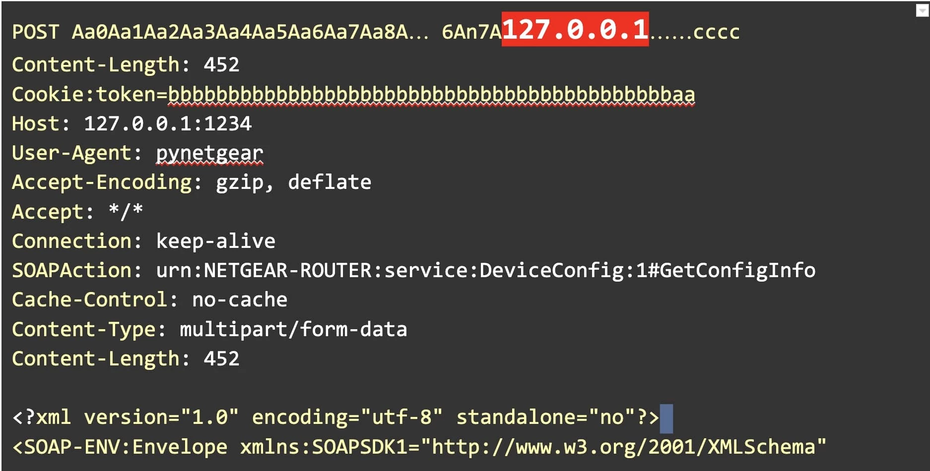 Using the fake IP (127.0.0.1) as we see in the “After” image, above left, we are able to bypass authentication and call any function the soap_serverd exposes as if we are fully authenticated. We decided to call the GetConfigInfo command which returns the entire router configuration including the device's serial, MAC address, hashed passwords, and much more.