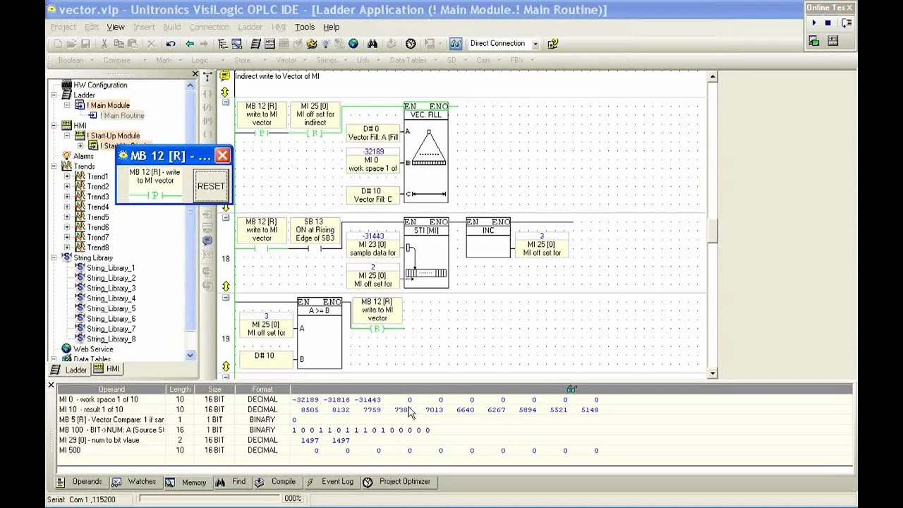 With that, we were able to connect to our PLC using Unitronics’ VisiLogic engineering workstation (EWS). We downloaded the EWS from the Unitronics site, installed it, and connected it to our PLC.
