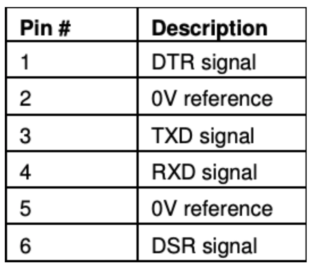 To solve this problem, we had to read Unitronics documentation to understand the pinout of the RJ11 connector. In order to allow the PLC to communicate using serial, Unitronics implemented a serial port using an RJ11 connector, and RS232 as the communication standard. Our goal was to create a custom cable, connecting the Vision PLC and our laptop (using the DB9 connector on our laptop). From Unitronics documentation, we discovered that the RJ11 port has the following layout: