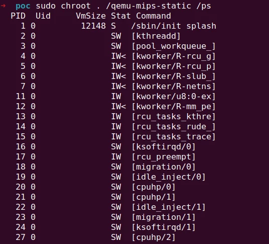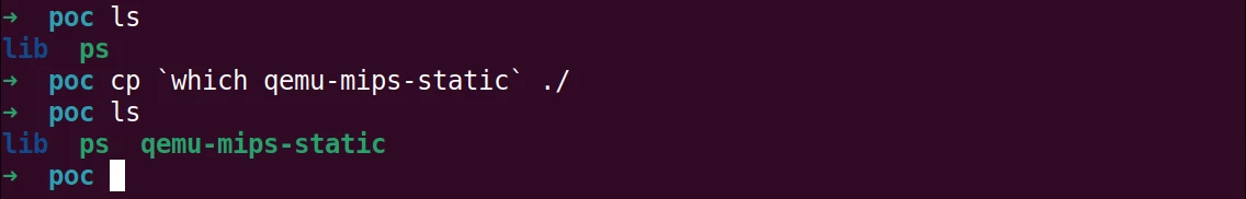 Now we need to bring the qemu-mips-static application into our fake root directory so we can use it in our chroot context.