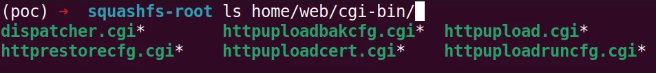 In the squashfs filesystem, we see it contains the device service’s related components such as assets used with the web server of the device.